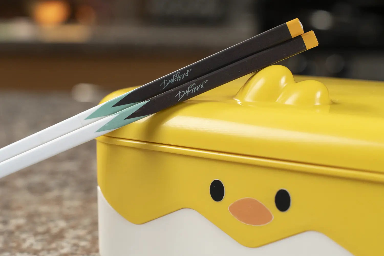 • Chopsticks: Melamine construction with printed Dokibird themed designs