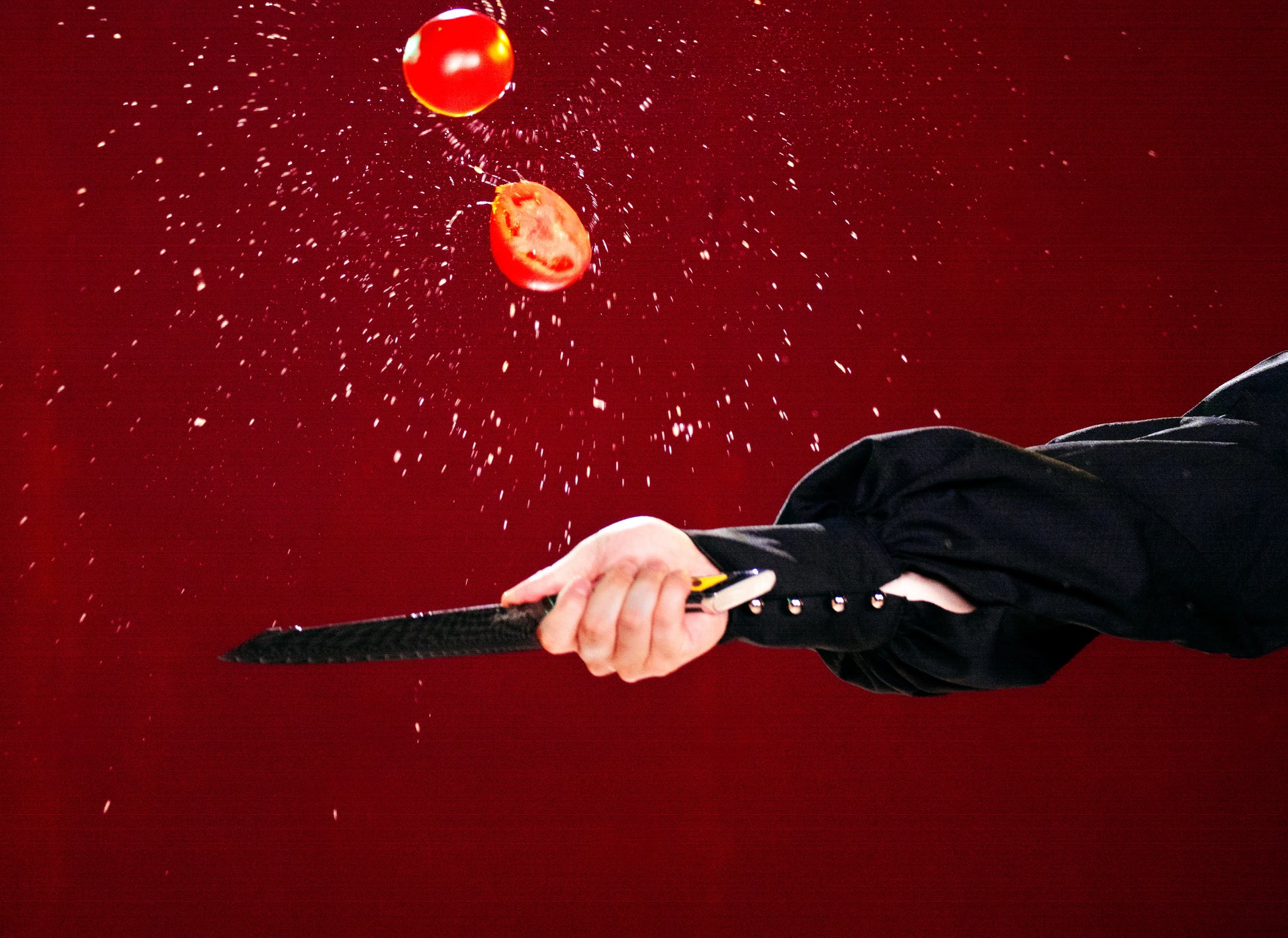 • The [Insert Voted Name Here] Kitchen Knife: World's only kitchen knife with ironsights, 67-layer Damascus around VG10 core