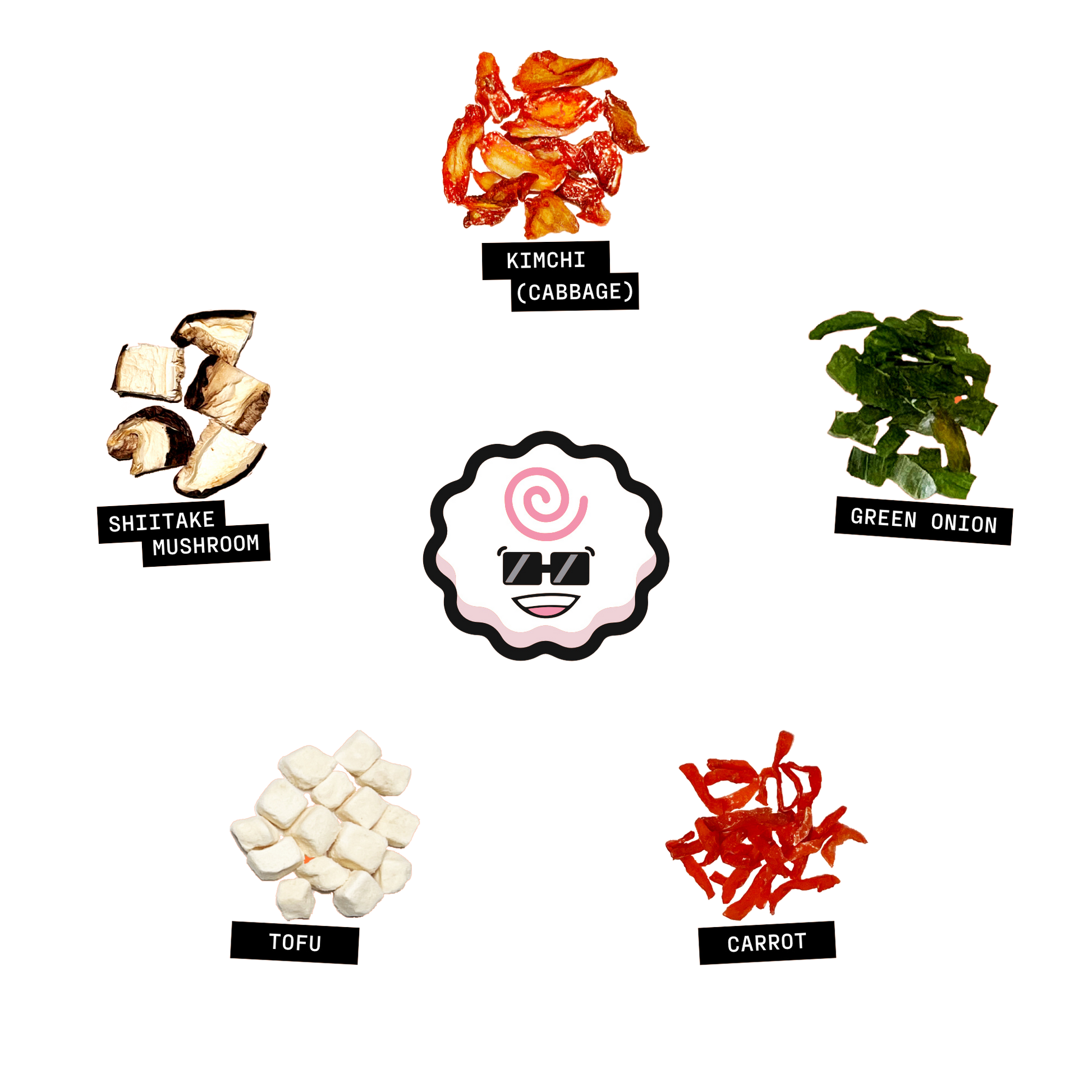 Toppings: Kimchi, Shiitake Mushroom, Carrot, Green Onion, Tofu